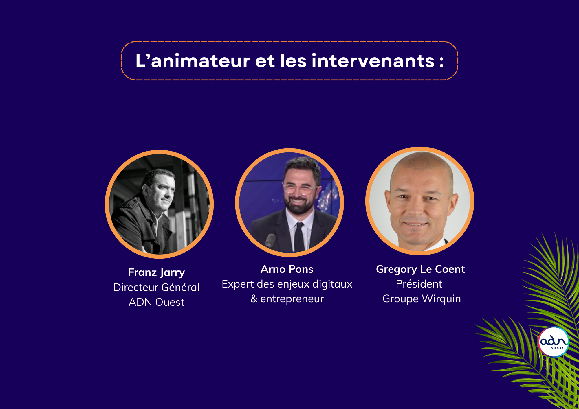 Une table ronde animée par Franz Jarry (Directeur Général d’ADN Ouest) avec : Arno Pons (expert des enjeux digitaux et entrepreneur) – Gregory Le Coent (Président – Groupe Wirquin).